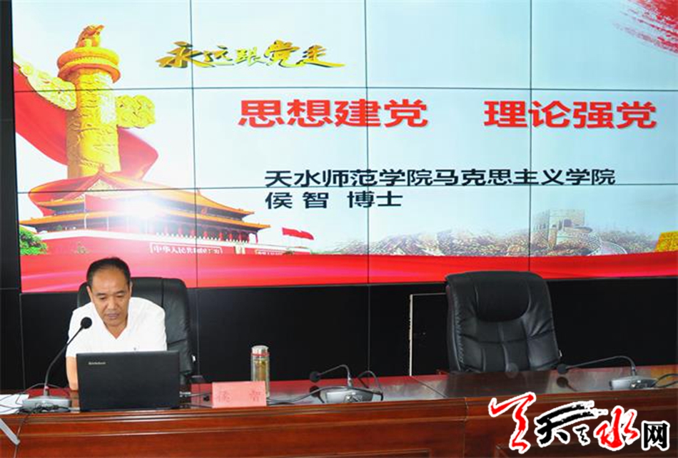 天水師范學院副教授、碩士生導(dǎo)師侯智博士應(yīng)邀為機關(guān)全體黨員干部講黨課。(天水市紀委監(jiān)委宣傳部)