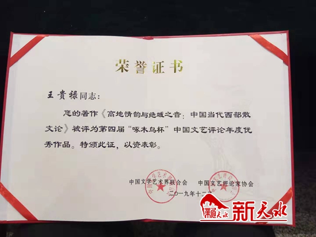 王貴祿著作獲第四屆“啄木鳥杯”中國文藝評論年度優(yōu)秀作品