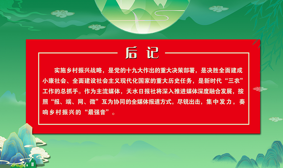 習近平總書記指出,脫貧攻堅不僅要做得好,而且要講得好。近年來,天水日報社肩負起為脫貧攻堅鼓與呼的重任,聚焦主題主線,開設“脫貧攻堅奔小康”“走向我們的小康生活”等多個專欄,紙質(zhì)媒體刊發(fā)脫貧攻堅稿件6500篇(幅)、理論專版42個、扶貧公益廣告專版200個、脫貧攻堅特刊(???86個;新媒體刊發(fā)和轉(zhuǎn)載新聞稿件26000多篇(幅),推出微電影、專題片、扶貧公益廣告視頻23期,編印了《見證——一張報紙與一座城市的35個故事》,精心編輯的《這里的花開了——“走向我們的小康生活”決戰(zhàn)決勝脫貧攻堅主題報告文學作品集》即將出版,為脫貧攻堅戰(zhàn)取得全面勝利營造了濃厚的輿論氛圍。