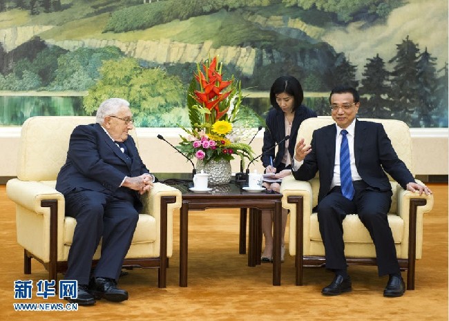 6月28日,國務(wù)院總理李克強(qiáng)在北京人民大會堂會見美國前國務(wù)卿基辛格。 新華社記者謝環(huán)馳攝