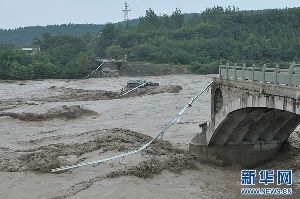 7月9日在四川綿陽江油市拍攝的老青蓮大橋垮塌事故現(xiàn)場。當(dāng)日11時許,因持續(xù)暴雨引發(fā)洪水,四川江油市通往綿陽的綿江公路通口河老青蓮大橋被沖垮,有車輛和行人落水。記者了解到,這座大橋在當(dāng)?shù)匾延袛?shù)十年歷史,汶川地震后經(jīng)過維修加固,但因洪水來勢兇猛,水流太大而垮塌。目前有2名落水行人被當(dāng)?shù)鼐翈X鎮(zhèn)農(nóng)民救起,現(xiàn)場正全力展開救援,具體傷亡情況仍待統(tǒng)計。新華社發(fā)
