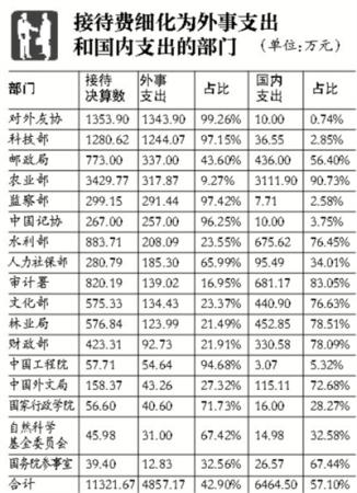 ????此外,一些部門公布的公務(wù)接待費中,實際上并沒有包含全部的接待費用。比如,司法部公布的接待費用112.84萬元,其在說明中表示,不包括外事接待費115.02萬元。但專家指出,外事接待費作為公務(wù)接待實際發(fā)生的一部分,將其排除在接待費之外是不準(zhǔn)確的。