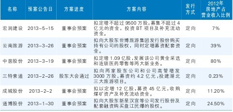 ????6家房企今年提出再融資預(yù)案情況