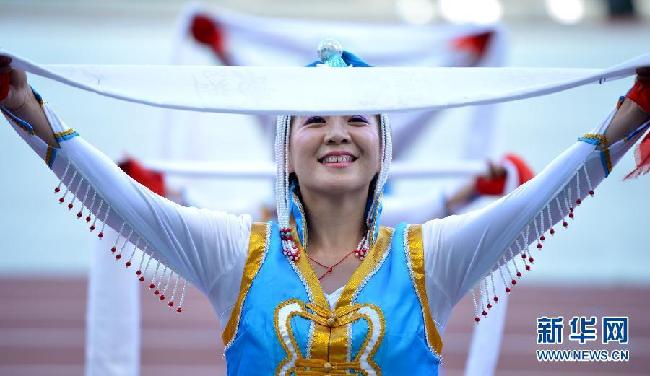 8月31日,第十二屆全國運動會即將在遼寧省沈陽市奧體中心體育場開幕。 這是開幕前的暖場表演。 新華社記者姚劍鋒攝