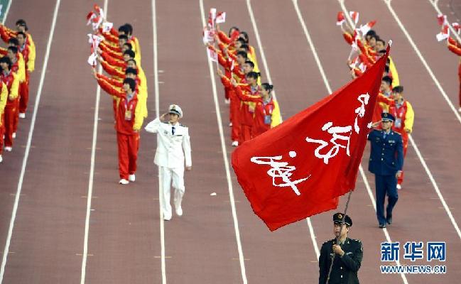 8月31日,手旗隊揮舞旗語,打出“遼寧歡迎您”的旗語。當日,第十二屆全國運動會在遼寧沈陽開幕。 新華社記者岳月偉攝