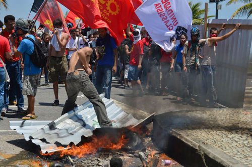 當(dāng)?shù)貢r(shí)間10月21日,巴西里約熱內(nèi)盧近海一座油田舉行開采權(quán)競(jìng)標(biāo),引發(fā)示威者抗議,與負(fù)責(zé)安保的大量配槍巡邏士兵發(fā)生沖突。 CFP
