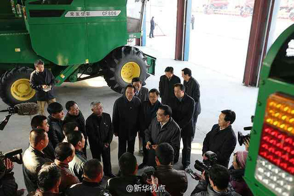 ????5日上午,李克強來到撫遠前哨農(nóng)場考察現(xiàn)代農(nóng)業(yè)綜合配套改革試驗進展。他說,發(fā)展現(xiàn)代農(nóng)業(yè)還得靠改革,特別是創(chuàng)新農(nóng)業(yè)生產(chǎn)經(jīng)營主體,這是關鍵,是重中之重,是龍頭。通過改革破解體制機制制約。黑龍江要闖出一條路子,給全國做示范。 新華社記者 丁林 攝