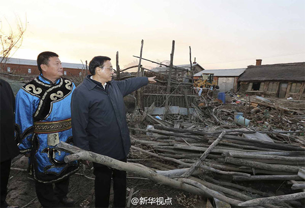 ????洪水已退,但八岔赫哲族村道路依然濕滑。4日,李克強踩著泥濘小路,一腳深一腳淺來到老鄉(xiāng)家后院,查看村里水毀房屋受損情況??吹皆S多土坯房泡水后墻體潰爛,李克強關(guān)心地詢問新房建設(shè)規(guī)劃。聽了村里重建新房計劃后,他說,政府會幫助大家建起赫哲族新家園。 新華社記者 丁林 攝