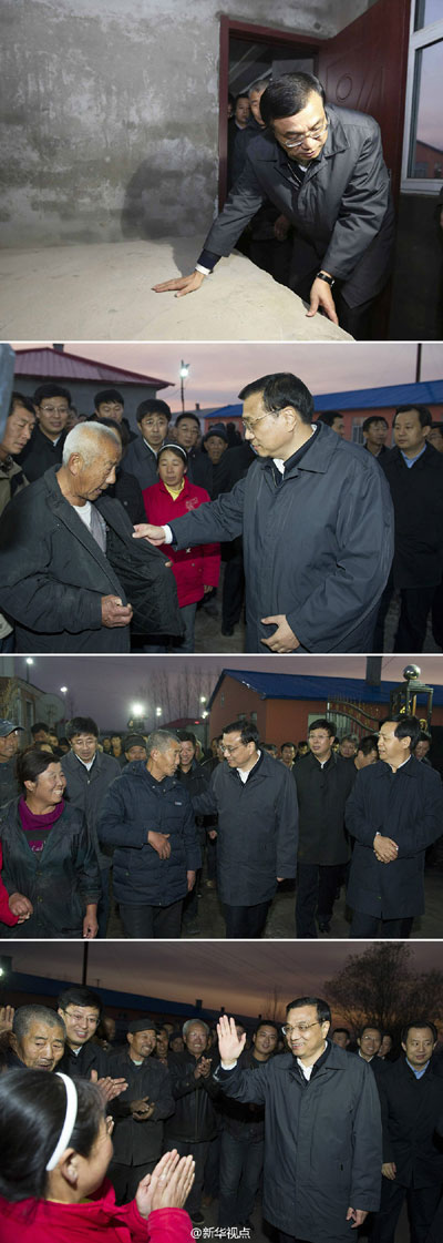 ????4日,天色漸晚,李克強來到同江銀川鄉(xiāng)幸福大院安置點,這里剛為受災特困戶和五保戶建起安置房。李克強說,黑龍江冬天冰天雪地,最怕冷。政府要安置好困難群眾,讓大家有地方住,溫暖過冬。冬天過暖和了,來年也一定有好春天,一定有好日子。 新華社記者?黃敬文 攝