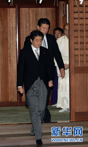 ????12月26日,在日本東京,日本首相安倍晉三(前)參拜靖國(guó)神社。 新華社記者馬平攝