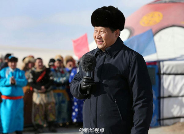 ????1月26日上午,習近平專程來到祖國邊疆的內(nèi)蒙古阿爾山,冒著零下30多度的嚴寒,頂風踏雪慰問在邊防線上巡邏執(zhí)勤的官兵??吹綉?zhàn)士們睫毛上都結(jié)了冰,習近平關(guān)切地詢問每天巡邏多長時間、多少公里?習近平說,你們爬冰臥雪,為祖國巡邏放哨,祖國和人民感謝你們!