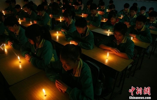 3月4日,深圳市公明春蕾學(xué)校的學(xué)生們,點(diǎn)起蠟燭為“3·01”暴力恐怖襲擊事件無辜遇難者默默祈福。中新社發(fā) 朱坤偉 攝
