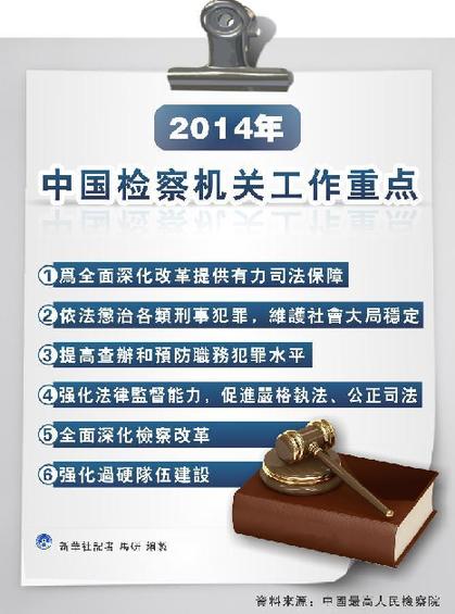 ????圖表:2014年中國檢察機(jī)關(guān)工作重點 新華社記者 馬研 編制