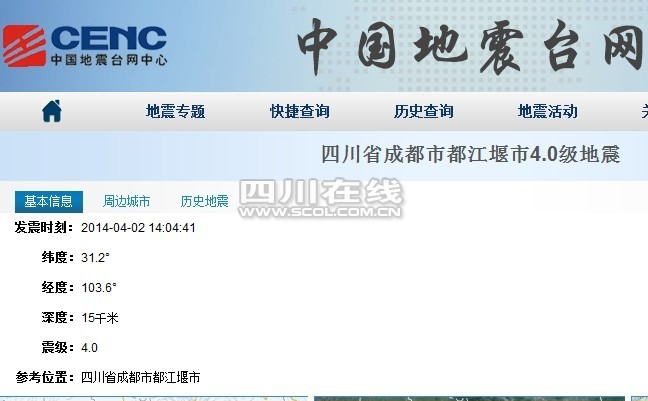都江堰發(fā)生4.0級地震 成都市區(qū)有輕微震感