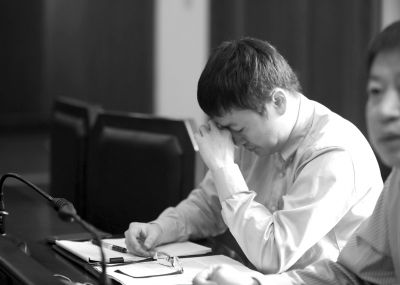 被告在法庭上一度悲傷抹眼淚。京華時(shí)報(bào)記者蒲東峰攝