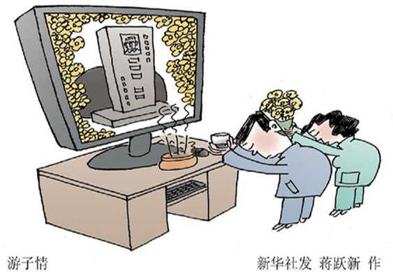 ????到先人墓前祭掃是清明節(jié)期間人們的主要活動。而近年來,越來越多身在異鄉(xiāng)無法歸家的游子,開始選擇通過網(wǎng)絡(luò)寄托對先人的哀思。 新華社發(fā) 蔣躍新 作