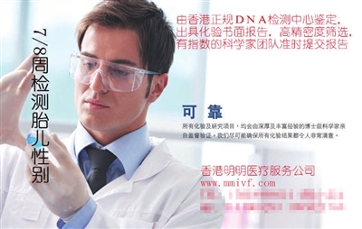 ????北青報記者昨天聯(lián)系到市衛(wèi)計(jì)委婦幼處相關(guān)負(fù)責(zé)人,她表示,我國嚴(yán)禁違法鑒別胎兒性別,但對于“寄血樣到香港檢測”這一渠道,這位負(fù)責(zé)人表示還從沒聽說過。