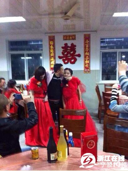 網(wǎng)曝象山舉行了一場“奇葩”婚宴80后男子左擁右抱迎娶兩個“新娘”
