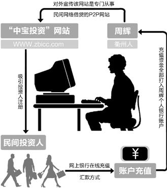 ????據(jù)查,周輝通過“中寶投資”的網(wǎng)站(對外宣傳該網(wǎng)站是專門從事民間網(wǎng)絡(luò)借貸的P2P網(wǎng)站),先是吸引投資人注冊,注冊后通過網(wǎng)上銀行在線充值或匯款方式進行賬戶充值,這些充值資金全部打入周輝個人銀行賬戶內(nèi)。然后,他假借他人名義虛構(gòu)貸款人和貸款用途,頻繁在網(wǎng)站上發(fā)布貸款協(xié)議,累計超過5000份,以此吸引投資人對貸款協(xié)議進行投資。