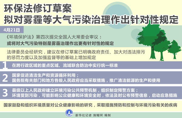 ????圖表:環(huán)保法修訂草案擬對霧霾等大氣污染治理作出針對性規(guī)定 新華社記者 施鰻珂 編制