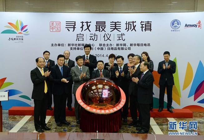 ???? 4月23日,國(guó)務(wù)院副秘書(shū)長(zhǎng)王仲偉(前排中),新華社黨組成員、副總編輯慎海雄(前排右三),新華社副秘書(shū)長(zhǎng)姚光(前排左三),安利(中國(guó))日用品有限公司總裁黃德蔭(前排右二)等一起啟動(dòng)“美麗中國(guó)·尋找最美城鎮(zhèn)”大型新媒體報(bào)道活動(dòng)。當(dāng)日,新華社“美麗中國(guó)·尋找最美城鎮(zhèn)”大型新媒體報(bào)道活動(dòng)在北京啟動(dòng)?;顒?dòng)將通過(guò)實(shí)地調(diào)研采訪與主題論壇相結(jié)合的方式,展示我國(guó)近年來(lái)城鎮(zhèn)化進(jìn)程中的最美風(fēng)景線。這項(xiàng)大型新媒體報(bào)道活動(dòng),由新華社新媒體中心發(fā)起并主辦,新華網(wǎng)、新華每日電訊聯(lián)合主辦,安利(中國(guó))日用品有限公司全程支持。活動(dòng)依托新華社全媒體優(yōu)勢(shì),借助網(wǎng)絡(luò)、微博、微信、客戶端等新媒體傳播方式,通過(guò)開(kāi)展“美麗中國(guó)·隨手拍家鄉(xiāng)”等線上主題活動(dòng),邀請(qǐng)全國(guó)網(wǎng)民共同參與尋找、發(fā)現(xiàn)中國(guó)城鎮(zhèn)之美。新華社發(fā)(李方宇 攝)