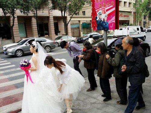 下午2點(diǎn),四川新聞網(wǎng)記者來到現(xiàn)場(chǎng)時(shí),并沒有遇到結(jié)婚的新人,也未看到來要錢的老年人。不過據(jù)附近的環(huán)衛(wèi)工人介紹,網(wǎng)友反映的事情確實(shí)存在幾個(gè)星期了,每次有新人在斑馬線拍照時(shí),一群老頭老太婆就會(huì)跑出來要錢,“少的話幾個(gè)人,多的話十幾個(gè),如果不給,他們就沖上去搶紅包?!?/p>