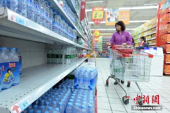 ?????2014年4月23日晚,武漢市政府應(yīng)急辦發(fā)布消息稱,漢江武漢段水質(zhì)出現(xiàn)氨氮超標(biāo),受此影響,當(dāng)晚漢江武漢段兩大水廠均已緊急停產(chǎn),全市260平方公里面積停止供水,30多萬(wàn)居民、數(shù)百家食品加工企業(yè)用水受影響,武漢居民為了保證用水,紛紛去超市搶購(gòu)瓶裝礦泉水。