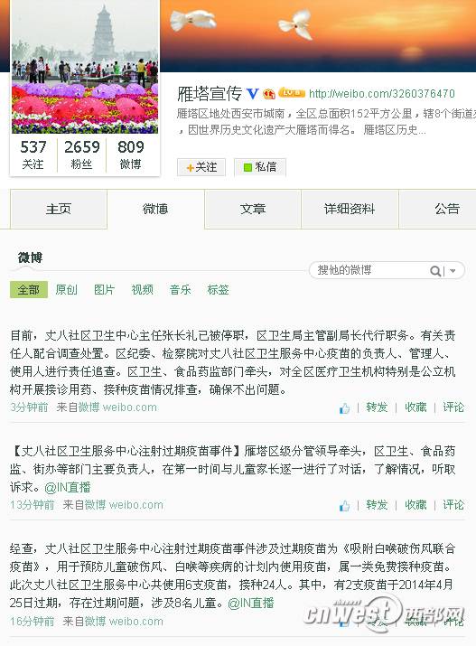 ????中共西安市雁塔區(qū)委外宣辦官方微博截圖。