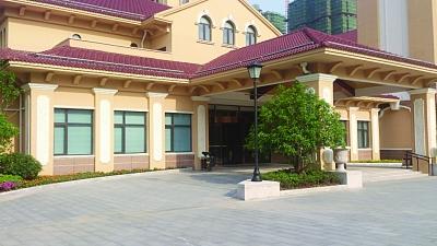 ????走進(jìn)大門,就發(fā)現(xiàn)這里很有高檔酒店的感覺——富麗堂皇的小洋樓,紅綠相間的花花草草,還有小型噴泉在大廳門前,往里走還有大片廣場(chǎng),可供老人散步閑聊。
