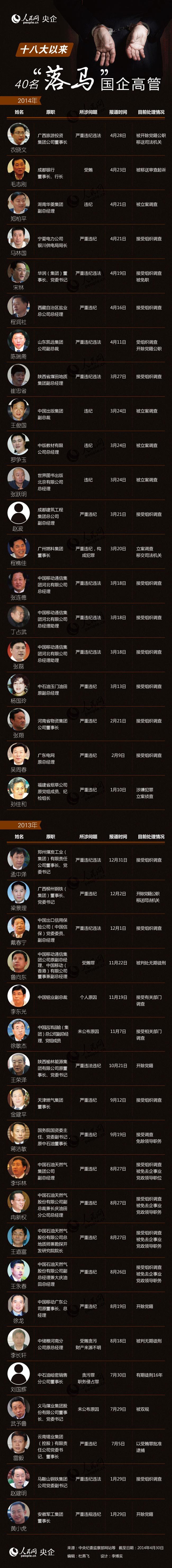 “十八”以來40名國企高管因反腐“落馬”