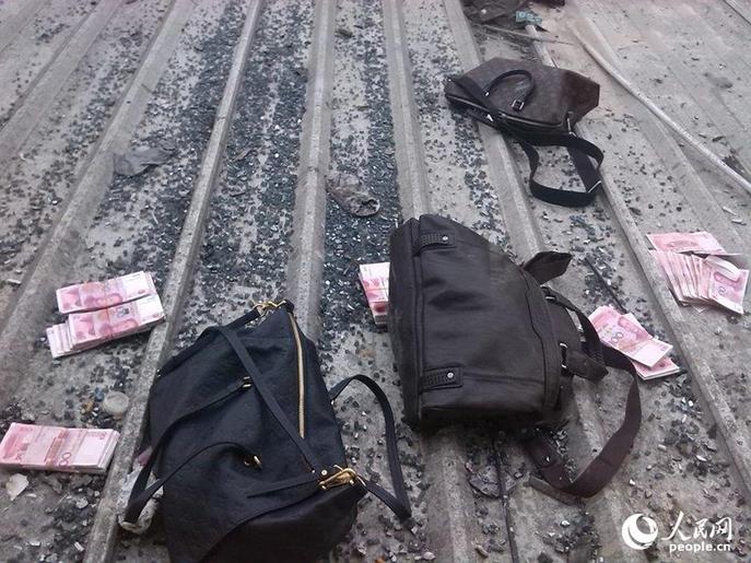 ????一位目擊者告訴記者,民警在窗外取錢時(shí),她也在現(xiàn)場(chǎng)。她看到,每一捆大約是一萬(wàn)元,除了外面散落的12捆外,三個(gè)包里也裝滿了錢,主要是百元大鈔,另有零星的50元和10元等。其中,最重的一個(gè)包里有32萬(wàn)元。據(jù)民警現(xiàn)場(chǎng)簡(jiǎn)單估算,丟下來(lái)的錢,有60多萬(wàn)元。