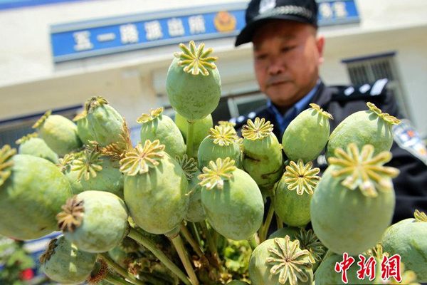 ????2014年5月6日,河南許昌,在鏟除罌粟集中統(tǒng)一行動中,民警展示鏟除的罌粟。