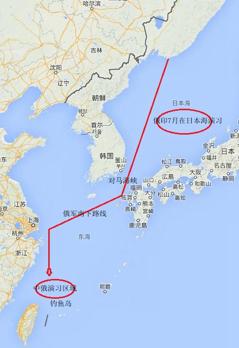 報(bào)道稱,這將是兩國(guó)海軍在釣魚島西北海域的首次聯(lián)合協(xié)同演習(xí),雙方將出動(dòng)20多艘水面和水下艦艇及輔助船。俄海軍太平洋艦隊(duì)新聞發(fā)言人拉曼海軍上校表示,俄海軍將派出1艘導(dǎo)彈巡洋艦、1艘導(dǎo)彈驅(qū)逐艦、1艘輔助船和1艘遠(yuǎn)洋拖船參演,俄海軍特混編隊(duì)將從對(duì)馬海峽南下抵達(dá)上海。俄海軍編隊(duì)從符拉迪沃斯托克起錨時(shí),恰好俄總統(tǒng)普京5月中旬到訪上海。
