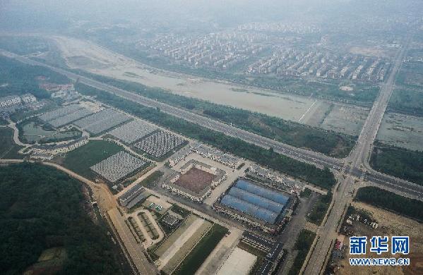 ????俯瞰北川縣城附近的北川維斯特農(nóng)業(yè)產(chǎn)業(yè)園(5月9日攝)。