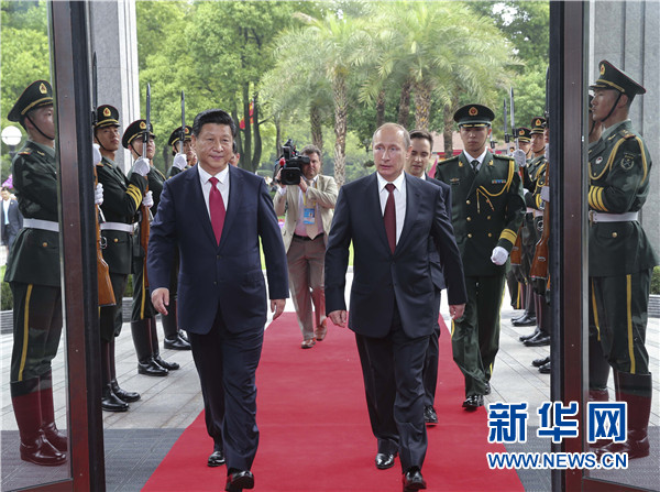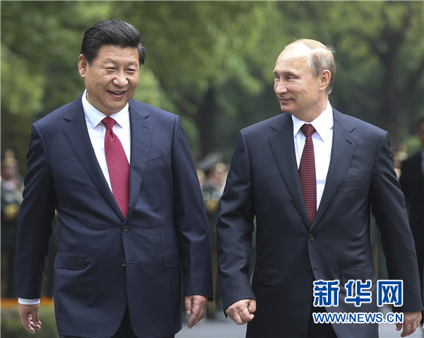 ????普京表示,我同習近平主席的會談是友好和建設性的,我們共同確定了兩國關系發(fā)展宏偉目標。雙方簽署的一系列合作文件非常重要。俄方愿同中方共同搞好下階段兩國一系列重要交往和活動,深化各領域合作,積極推進戰(zhàn)略性大項目,共同慶祝世界反法西斯戰(zhàn)爭暨中國人民抗日戰(zhàn)爭勝利70周年。我期待著應習近平主席邀請今年來華出席亞太經(jīng)合組織領導人非正式會議。
