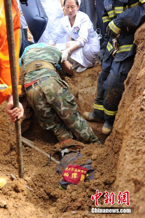 ????2014年5月26日10時(shí)17分,湖北省孝感安陸市發(fā)展二路安能電廠旁城市道路改造工地發(fā)生坍塌,1名施工人員被埋壓。接警后,孝感市公安消防支隊(duì)迅速調(diào)集安陸中隊(duì)現(xiàn)場施救,在抬送被困工人過程中,中隊(duì)長盧亮和戰(zhàn)士萬京燕、孫雨豪及被救工人(卓進(jìn)波,男,46歲,湖北孝感安陸市接官鄉(xiāng)五組村民)被突然發(fā)生的大面積塌方埋壓。經(jīng)全力搜救,被埋壓4人于16:37分救出,己全部遇難。圖為中隊(duì)長盧亮至死都保持著救人的姿勢。文字來源:荊楚網(wǎng) 武林 攝 圖片來源:CFP視覺中國
