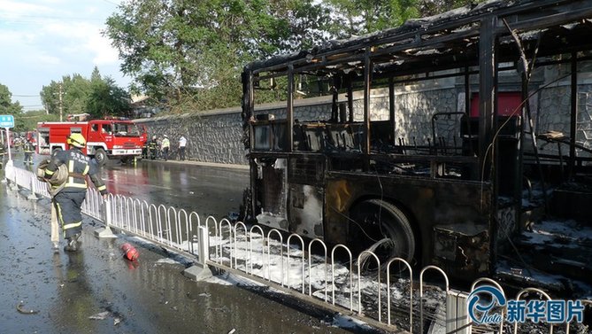 ????李先生稱已有三輛消防車趕到現(xiàn)場,數(shù)名消防員正在對公交車進(jìn)行噴水作業(yè)。目前車輛明火已經(jīng)被撲面,公交車已燒得只剩下車架。警察詢問他時(shí),當(dāng)時(shí)車上有三,四十人,司機(jī)試圖滅火,車上也有滅火器,但沒有成功,乘客已經(jīng)成功疏散