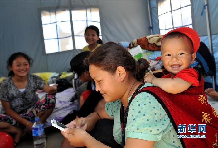 ????5月31日,在云南盈江地震的重災(zāi)區(qū)卡場(chǎng)鎮(zhèn),一名小孩子在救災(zāi)帳篷內(nèi)和家人在一起。 “六一”兒童節(jié)臨近,云南盈江抗震救災(zāi)工作在緊張進(jìn)行中。在盈江震區(qū),不失天真活潑的孩子們,以積極的心態(tài)迎接自己的節(jié)日。