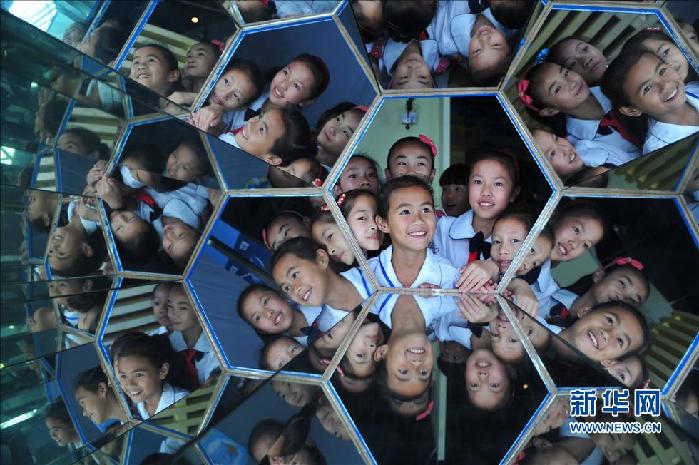 ????5月30日,在廣西科技館,孩子們?cè)隗w驗(yàn)“多棱鏡萬花筒”的樂趣 。當(dāng)日,廣西柳州市融安縣大坡鄉(xiāng)崗偉村小學(xué)的16名留守兒童們來到位于南寧市的廣西科技館,參加“攜手共筑科學(xué)夢(mèng)”迎接“六一”兒童節(jié)活動(dòng),孩子們?cè)谶@里學(xué)習(xí)標(biāo)本制作、參觀科普展覽、觀看高科技4D電影、體驗(yàn)科學(xué)儀器,感受科學(xué)的神奇和魅力。