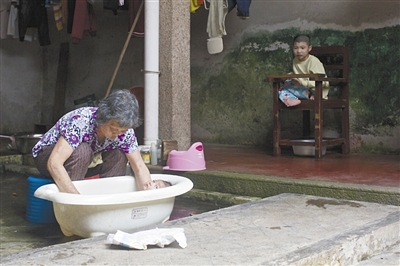 ????5月22日,邱阿姨在給孩子洗澡。邱阿姨來寺廟8年了,主要負(fù)責(zé)照顧剛出生的孤兒和智障兒童。