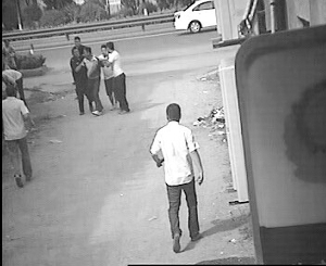 ????在警方提供的監(jiān)控視頻里,現(xiàn)代快報記者看到,兩人先是在路邊坐下,接著不停地爭吵,期間女子不止一次地掌摑男子,并拿起磚頭相挾。隨后,男子從包內(nèi)抽出菜刀,對著女子的頭部猛砍數(shù)刀。