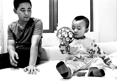 2歲的原原現(xiàn)在只能用右手抓東西攝影/本報(bào)記者郁驍