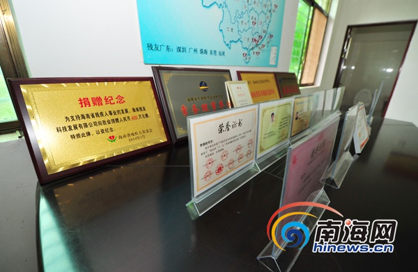 ????海南殘友信息技術(shù)研究院獲得的各種榮譽(yù)證書和牌匾。(南海網(wǎng)記者秦彥攝)