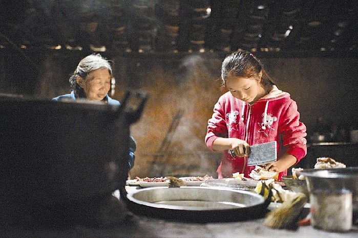 ????生火做飯等,是11歲的鄒章庭必須面對的家務活。