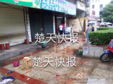 @楚天快報隨州新聞:今早七時二十分許,隨州城區(qū)一橋頭發(fā)生一慘案,兩中年男子在過早時因口角發(fā)生斗毆,一名五十歲左右男子被狂砍數(shù)刀后,倒地身亡。據(jù)多名目擊者稱,被砍者當場被捅開胸膛,現(xiàn)場鮮血淋漓,場面十分慘烈!目前肇事者已被警方控制,事故原因正在調查中。