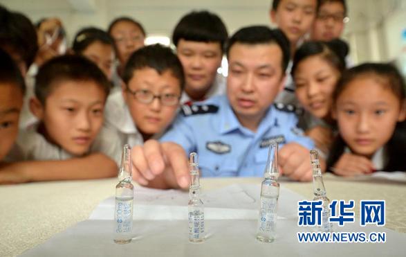 ????6月24日,河北省邯鄲市公安局禁毒支隊(duì)民警給渚河路小學(xué)的學(xué)生們介紹毒品帶來的危害。世界禁毒日到來之際,各地紛紛開展禁毒宣傳進(jìn)校園活動(dòng),讓孩子們認(rèn)識(shí)毒品、遠(yuǎn)離毒品。6月26日是國(guó)際禁毒日,今年的主題是“珍惜美好青春,遠(yuǎn)離合成毒品,拒絕毒品,健康人生”。 新華社發(fā)(郝群英 攝)