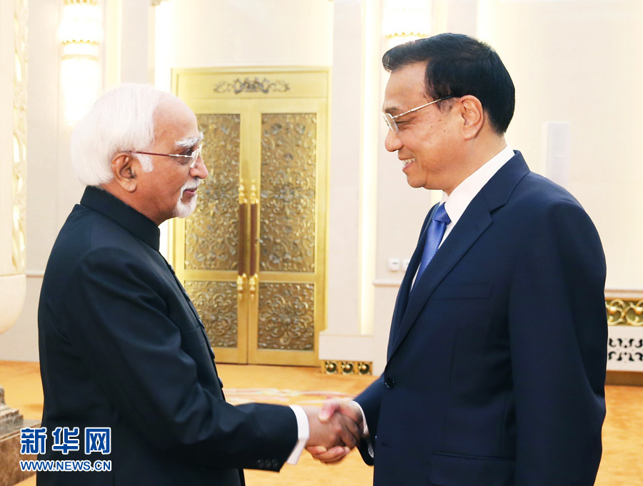 ????6月28日,國務院總理李克強在北京人民大會堂會見印度副總統(tǒng)安薩里。新華社記者 姚大偉 攝