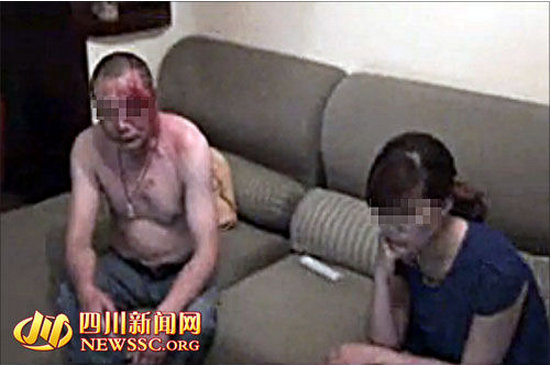 ????據(jù)網(wǎng)上發(fā)布的一段1分7秒的視頻顯示,有兩名男子將一名中年男子按倒在沙發(fā)上,同時(shí)視頻中傳出呵斥辱罵該中年男子的人聲。中年男子表示,可以提要求,并愿意出錢解決。另一段2分57秒的視頻顯示,一名中年男子癱軟在沙發(fā)上,眼睛被打腫,周邊都是血跡。一名女子坐在男子旁邊,低著頭不說話。