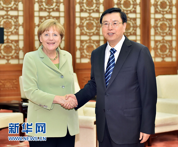 ????7月7日,全國人大常委會委員長張德江在北京人民大會堂會見德國總理默克爾。 新華社記者 李濤 攝