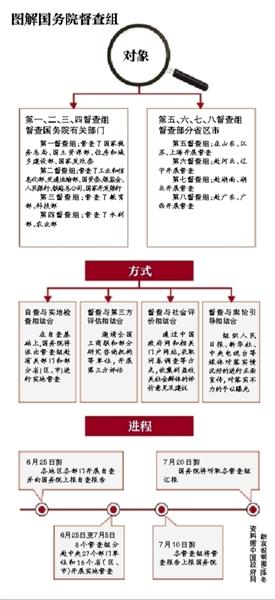 ????從5月30日做出決定,到6月25日至7月5日,8個(gè)督查組分赴中央27個(gè)部門單位和16個(gè)?。▍^(qū)、市)開展實(shí)地督查,再到7月10日前,各督查組將督查報(bào)告上報(bào)國務(wù)院,督查工作已經(jīng)完成大半,此次國務(wù)院全面督查的整個(gè)工作流程逐步清晰。